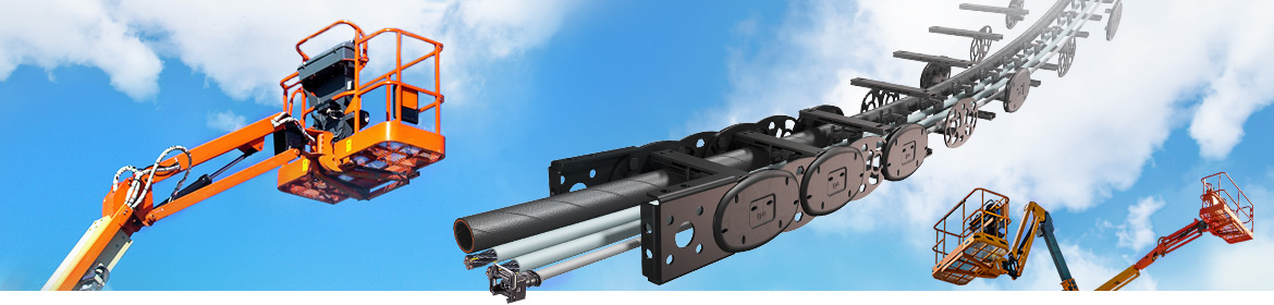 Platformele telescopice de lucru și platformele de ridicare la înălțime oferă puțin spațiu pentru furnizarea de energie sigură, astfel încât utilizatorii preferă să folosească portcabluri realizate din materiale plastice de înaltă performanță sau portcabluri hibride din plastic-oțel de la igus pentru a-și proteja cablurile și furtunurile supra solicitate.