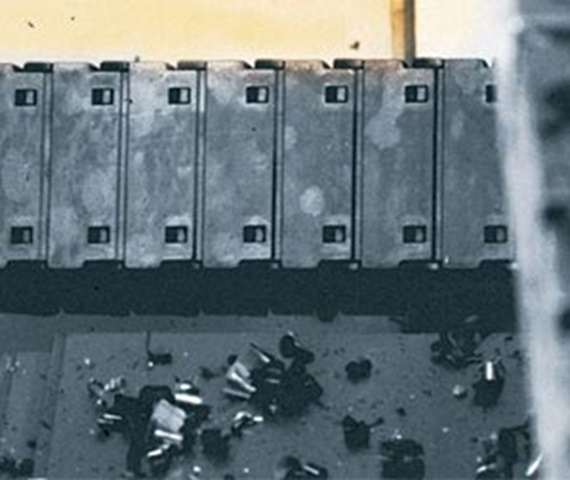 Testele de laborator şi numeroasele referinţe fac din portcablurile igus® e-chain® şi Tuburile-E un scut sigur pentru cabluri la roboţii de sudură şi la maşini unelte. Zgura de sudură lasă urme vizibile parţial, dar nu dăunează materialului sau funcţiei acestuia. Tuburile-E igus® au trecut cu brio testele cu aşchii metalice de dimensiuni medii la 900°C. Acestea sunt montate la nivel mondial la maşini unelte în domenii unde apar aşchii. igumid G nu este apt pentru contactul direct cu cantităţi mari de aluminiu topit.