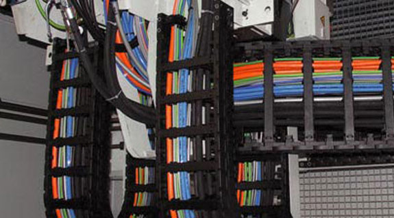 Low-maintenance cable guidance in CNC grinding machines, encountering oil and chips