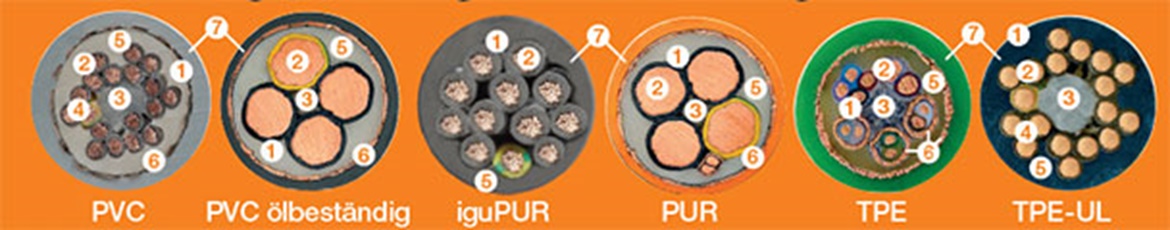 Cabluri de comandă, Cabluri de putere, Cabluri servo, Cabluri ptr sistem măsurare, Cabluri cu fibră optică, Cabluri coaxiale, Profibus, Ethernet, Profinet, USB, Device-Net, CC-Link, RoHS, DESINA, CE, UL, CSA, Cleanroom, 30V, 300V, 600V, 1000V